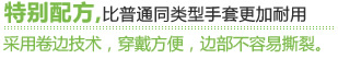 • 3、采用優(yōu)異天然乳膠,特別配方,比普通同類(lèi)型手套更加耐用。